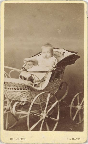 Editor: Here we have an untitled gelatin-silver print from the 1920s, showing a baby asleep in a suitcase. The stark contrast creates a striking image, but honestly, the placement of the baby feels… unsettling. What do you see in this photograph? Curator: Unsettling is a perfect word. This image resonates with layered cultural anxieties and the constant human experience of migration. The suitcase, a vessel of transition and departure, becomes a cradle. What does it mean when the secure, still, quiet, private home is replaced by transient public transport infrastructure? Editor: So, the suitcase isn’t just a practical object, but a symbol? Curator: Precisely! It speaks volumes about impermanence, of lives packed and ready to move. We are seeing increased global mobility now, but mobility was increasing then too! Photography made it possible for people to circulate their image more freely. So, in a time of unprecedented globalization, to place the baby here suggests… perhaps vulnerability, dispossession, or even a kind of hope invested in travel and border-crossing. How does it speak to *your* memories? Editor: I suppose it does reflect a universal feeling… that sense of being between places, never fully settled. I hadn't considered the historical context and photography’s role like that. Curator: These potent images compress time and carry emotional resonance across generations. The anonymous photographer has accessed an iconography we’re still deciphering today. The circulation and manipulation of images in turn create and modify our own cultural memory, no? Editor: Definitely. Looking at it that way makes it much more thought-provoking. It's no longer just an odd picture, but a symbol of something bigger. Curator: Precisely. Our visual memories are powerful things.