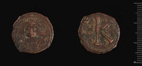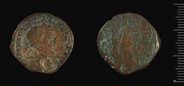 Editor: This is a coin from Cibyra, minted under Faustina Junior. The patina is lovely. The details are difficult to make out. What strikes you about it? Curator: The coin’s physical degradation is telling. The very visible wear and tear contribute to its aesthetic. The surface, almost polished by time, reflects light in a way that a pristine coin would not. Editor: So the coin's condition is an important aspect? Curator: Precisely. The erosion of the original design, the softening of the relief - they alter the intended composition, creating new visual textures and patterns. Consider how the absent details invite interpretation. Editor: I hadn't considered that. Thanks! Curator: A close examination like this reveals an appreciation for the artistry in the object's transformation over time.