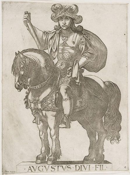 Editor: This is "Saint Martin and the Beggar," a pencil drawing on paper by Vittore Carpaccio, dating roughly from 1493 to 1500. The composition, even in this preliminary sketch, strikes me with its stark contrast between the mounted, regal figure and the vulnerability of the beggar. What structural elements stand out to you? Curator: The most compelling aspect of this work resides in its dynamism and stark linearity. Observe how Carpaccio employed subtle hatching to render three-dimensionality, yet maintains a prevailing emphasis on the line as the delineator of form. Note also the strategic deployment of negative space to accentuate the figures’ volume and dramatic tension. Consider how the positioning of the figures – Saint Martin elevated, the beggar imploring – reinforces the narrative’s moral imperative. Editor: I see the emphasis on line you are describing, almost as though the figures were carved, yet still they look dynamic! Is there anything else that might inform our reading of the work’s formal organization? Curator: Indeed, let us not neglect the equestrian element. Note how the horse’s stance - one leg lifted - serves as an additional structural device, a dynamic counterpoint to the relatively static posture of Saint Martin. In many respects, this detail enlivens what might otherwise be a predictable composition, introducing an element of anticipatory motion. Notice the balance that Carpaccio achieves. It seems precariously poised on the brink of transformation. Editor: So, we’re seeing that the visual organization through form and line conveys meaning itself, beyond just the subject matter. It’s the tension and implied movement that create dynamism. Curator: Precisely! Carpaccio, through his formal choices, invites us into a meditation on the moral act. Through semiotic analysis we read it, but it’s first formally organized to evoke those sentiments in the first place. Editor: This focus on the formal and structural elements gives me a completely new way to appreciate this piece, and how artists use these aspects to evoke emotion. Curator: Indeed! Hopefully you appreciate the complex arrangement and how they tie into meaning making beyond narrative depictions.