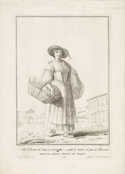 François Auguste Moitte etched this image, Kvinde fra Firenze, capturing a Florentine woman with a 'petite coëffe' and translates to a 'small cap'. This head covering, modest and unassuming, reminds us of similar veils across centuries—the humble headscarves of medieval women, or the veils of nuns, symbols of piety and protection. Yet, here, the coëffe is more decoration than devotion, a sign of bourgeois status. Consider, too, the classical architecture framing her. Columns and arches echo the grand structures of ancient Rome, a nod to timeless ideals. But this grandiosity is tempered by the everyday, with its focus on the fashionable lady. It shows the non-linear progression of symbols, resurfacing, evolving, and taking on new meanings in different historical contexts.