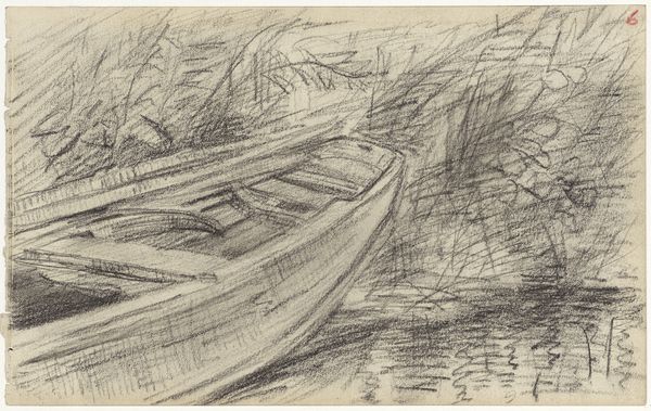 Leo Gestel made this drawing of a ship with a man aboard on the water with black chalk. Look at the way he’s built up the image, with these really direct, quite rough marks. You can feel him working, smudging, getting the tone just right. There’s something so immediate about drawing, you know? It's like the thought goes straight from the brain to the hand. Gestel captures the scene's quiet stillness with the contrast between the dark, solid boat and the soft, almost hazy background. Notice how he uses the chalk on the water, those horizontal strokes suggesting movement and reflection. It’s so simple, yet so effective. You can see echoes of someone like Edvard Munch here, that same feeling of being alone in nature, wrestling with the world. Art’s just one big conversation, isn’t it? Gestel's work reminds us that art doesn't always need to shout; sometimes, it whispers.