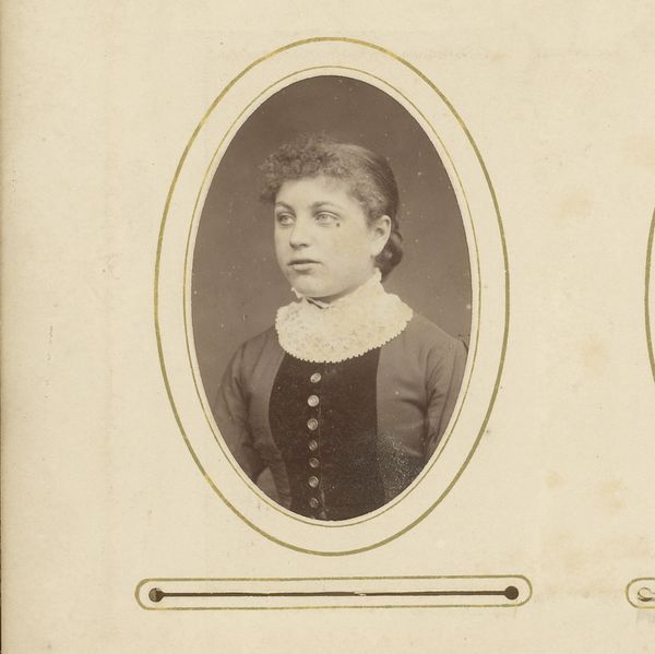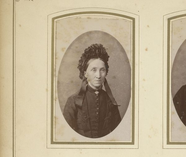 This is a portrait of a woman with a bonnet by Benjamin Sanders. While the exact date is not available, the photographic processes suggest the latter half of the 19th century. The oval composition directs our gaze toward the sitter’s face. Her features are captured with a clarity that speaks to the developing technical prowess of photography at the time. The subdued sepia tones lend the portrait a sense of timelessness. The texture of her bonnet and shawl, rendered in great detail, contrasts with the smoother rendering of her face. This juxtaposition draws our attention to the interplay between the constructed artifice of attire and the natural features of the individual. Does this photograph destabilize conventional portraiture? Perhaps the focus here is less on the sitter's identity and more on the study of form and texture. Consider how the artist uses the play of light and shadow to model her face and clothing. This is not just a portrait of a person, but an essay on the capabilities of the photographic medium. It reveals how it captures, manipulates, and interprets reality through tonal variation.