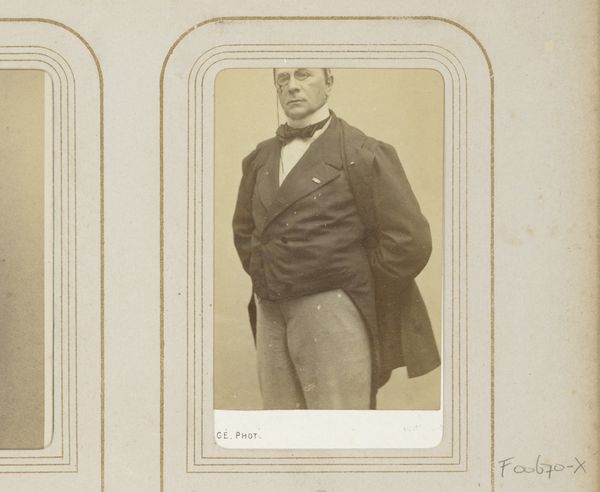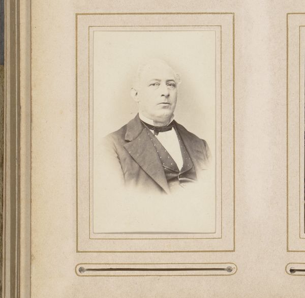 Editor: Here we have a portrait of Hippolyte Carnot, sometime between 1860 and 1880, by Georges Mathurin Legé. It looks like a photograph that’s been mounted on cardstock. There's an air of seriousness to it. How do you interpret this work, seeing it now? Curator: Immediately, I'm drawn to how this portrait, so seemingly straightforward, exists within a complex web of 19th-century social dynamics. Hippolyte Carnot was a prominent politician and educator, deeply involved in shaping French republican ideals. Knowing this, consider how the very act of creating and displaying this portrait—its accessibility—speaks to the burgeoning power of the middle class and the shift away from aristocratic forms of representation. What does this image say about how power was being constructed and visualized at the time? Editor: That’s fascinating. I hadn't considered the political context. It's more than just a picture; it's a statement. Curator: Precisely. Look at his clothing, his posture, even the plain background. There’s a deliberate attempt to project an image of respectability, trustworthiness – virtues central to republican ideology. Also note that photography itself, still relatively new, democratized portraiture. Instead of needing a painter, a wider segment of society could capture their likeness. Doesn’t this make you consider the possibilities for challenging established power structures that this new medium enabled? Editor: Absolutely. It’s like he’s trying to say something about his values through the portrait. What’s most intriguing is the silence surrounding the challenges photography posed to painting, and by extension, social structures. Curator: Indeed. This portrait, while appearing simple, holds layers of meaning when we examine it through the lenses of politics, class, and technological change. Seeing it in the light of contemporary theories on identity, it provides an avenue to analyze 19th-century representation. Editor: I’ll definitely look at 19th-century portraiture with a fresh perspective going forward!