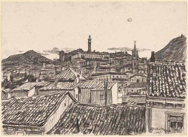 William Evan Charles Morgan made this etching, called "Orvieto Roofs", in 1926. It’s a real maze of lines, isn't it? The whole thing is built up from these tiny hatched marks, a bit like how you might build a city from bricks. I find myself getting lost in the detail, but then pulled back by the bigger shapes of the roofs and buildings. Look how the surface almost vibrates. There's this one dark patch, on the cliff face to the left, where the lines are really dense and chaotic. It’s like a little storm of ink. That area, for me, holds the key to the whole piece. It's like the artist is saying, “Here’s where the energy is, where the mess of the world comes together.” Morgan's process reminds me a little of Piranesi, another printmaker who loved getting lost in architectural details. It’s that sense of endlessness, the feeling that the image could keep going forever. It is really just such a wonderful conversation across time.