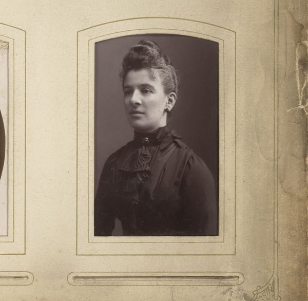 Editor: This is "Portrait of a Woman" by Edmond Sacré, a gelatin silver print likely taken between 1890 and 1920. It has such a melancholic mood to it, doesn’t it? What can you tell me about it? Curator: It certainly does evoke a specific feeling. As a historian, I immediately look at the conventions of portraiture at the turn of the century. Photographic portraits like these became increasingly accessible to the middle class, allowing more people to participate in image making and the construction of their own public identities. What strikes you about her clothing? Editor: It looks very ornate and proper; it speaks to a specific social class, perhaps? Curator: Exactly! The elaborate lace, the carefully styled hair – these were conscious choices. Consider how photography, as a new medium, was grappling with older traditions of painting. Photographers sought to emulate the aesthetic qualities of painted portraits, imbuing their work with artistic value and lending their subjects a certain status. Do you think the photograph is a faithful representation? Editor: I see what you mean! With the soft focus, it isn’t necessarily aiming for reality. Perhaps, it aims at a softer interpretation, like how the Impressionists capture the overall impression of a person? Curator: Indeed! The manipulation of light and focus were employed to achieve a specific aesthetic, elevating photography from mere documentation to art. And it begs the question: How much did these newly accessible images reinforce or challenge existing social hierarchies? Was access equal? Editor: It gives me a lot to think about – how access to portraiture can speak to power. Curator: And how these portraits, intended for personal or family albums, can become historical documents themselves, prompting questions about the past. Thanks for sharing your thoughts!