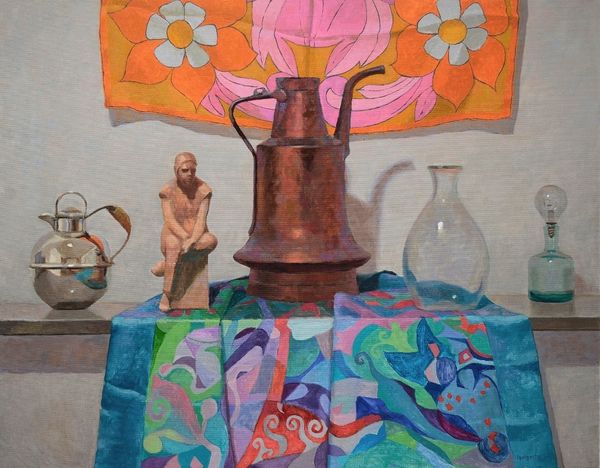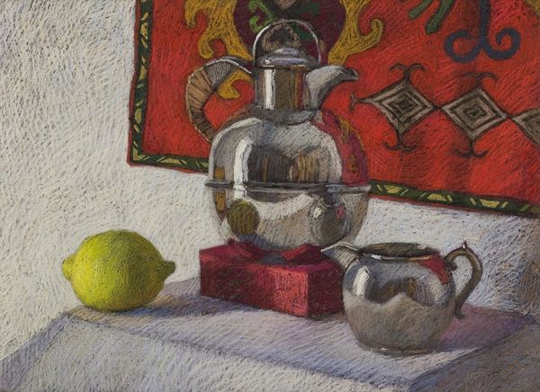 Melissa Hefferlin crafted this still life, "The Silver Teapot," using oil on canvas. Notice the teapot, not just as a mundane object but as a symbol of domesticity and social ritual. Consider the repetition of vessels and containers, from the teapot itself to the small bottles arranged nearby. These forms echo across cultures and centuries, resonating with ancient amphorae and reliquaries. The act of containing—be it liquid, medicine, or sacred relics—speaks to our fundamental human need to protect and preserve. Even the box supporting the teapot suggests containment and stability, a foundation upon which daily routines are built. This arrangement evokes a sense of hidden, latent energy. The objects are frozen in time, yet they hum with potential—a shared cup of tea, a moment of healing. This juxtaposition creates a tension, inviting viewers to project their own desires and memories onto the scene. Through the careful arrangement of simple objects, Hefferlin taps into a wellspring of collective experience. The scene offers a quiet, yet profound, connection to our shared humanity.