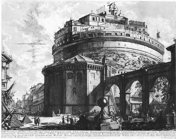 Giovanni Battista Piranesi created this etching of the Arch of Septimius Severus. The Arch is presented in stark monochrome, with the monument's imposing structure dominating the composition. Piranesi’s cross-hatching creates a rich texture, emphasizing the ruinous yet grand state of the architecture. Piranesi masterfully employs the contrast between light and shadow to convey a sense of depth, with the intricate carvings and the rough texture of the stone brought into sharp relief. This dramatic interplay is not just aesthetic; it serves to articulate the sublime, a key concept in eighteenth-century thought. The sublime is all about experiencing awe and terror. The figures at the base are dwarfed by the structure, creating a clear relationship between the past and the present. Piranesi uses architecture to invite us to reflect on history, power, and the passage of time. The engraving offers a stage on which viewers can contemplate the symbolic weight of classical forms and engage in an ongoing interpretation of cultural and philosophical ideas.