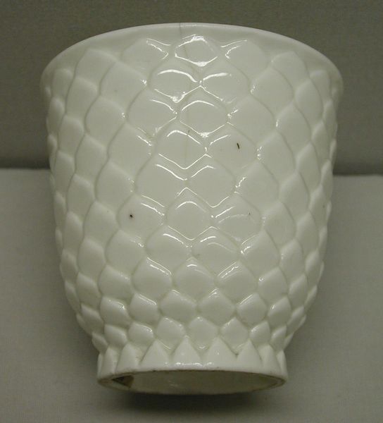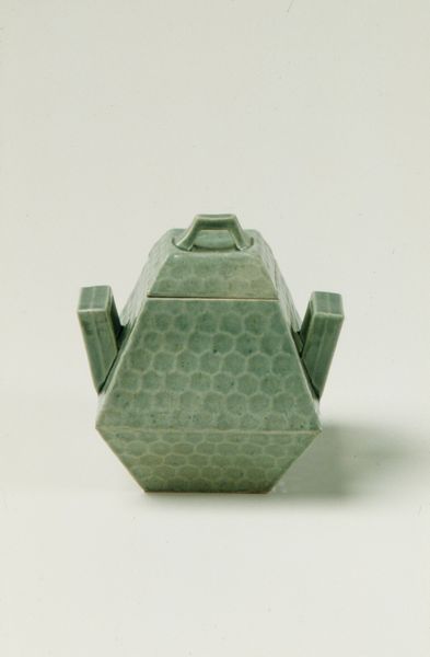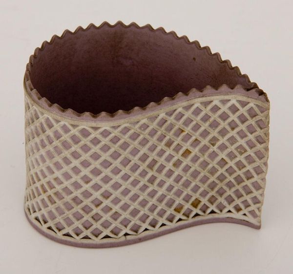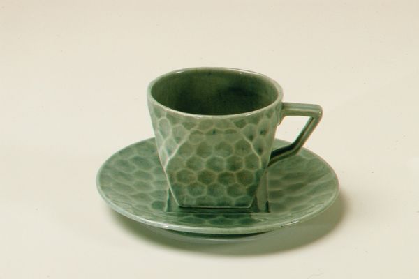 Editor: This little "Small Custard Cup" by Wedgwood looks like a waffle! The geometric pattern is striking, and the material has a unique texture. What can you tell me about its making? Curator: Wedgwood was a pioneer in industrializing pottery production. Consider how this seemingly simple cup reflects larger shifts in labor, consumption, and class during its era. The repeated pattern, the specific material—jasperware, likely—these speak to innovative manufacturing techniques and the expansion of consumer culture. Editor: So, its value lies in its reflection of broader manufacturing practices? Curator: Precisely. How does its materiality challenge notions of art versus craft and reveal the social dynamics of production and consumption? Consider its function and who might have used such a cup. Editor: I hadn't thought about it that way. I was focused on its aesthetic. Thanks, I'm off to consider the means of production! Curator: Likewise. The cup prompts us to reconsider how everyday objects encode social and economic histories.