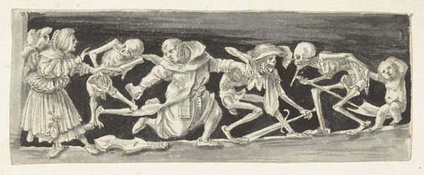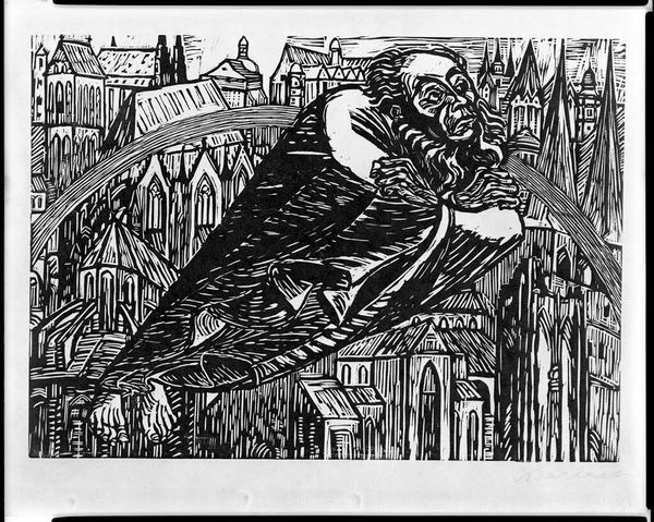 Editor: Here we see Ernst Barlach's "Wandering Death," a stark image rendered in charcoal. It evokes a sense of weariness. What do you see in this piece, from a historical and social point of view? Curator: Barlach, living through the world wars, presents death not as a triumphant force, but as an exhausted wanderer. Consider the socio-political context: the devastation of war, the rise of fascism. Do you see a critique of power here? Editor: I do. It's like death is burdened by the very suffering it inflicts. Is that a purposeful reversal of traditional depictions? Curator: Precisely. Barlach, deemed "degenerate" by the Nazis, used art to challenge dominant ideologies, revealing the human cost of conflict and questioning notions of heroism and sacrifice. This piece asks: who benefits from war? Editor: So, it's less about mortality and more about the morality of war. That's a powerful interpretation. Curator: Indeed. By humanizing death, Barlach indicts those who perpetuate suffering. It's a sobering reflection on the choices we make as a society.