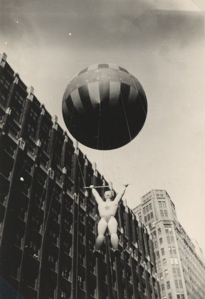 Editor: Here we have Walter Rosenblum's 1938 gelatin silver print, "Girl on a Swing, Pitt Street, New York." There's a kind of melancholy stillness about it, a woman caught mid-swing under this looming bridge. What do you see in this piece? Curator: I see a powerful commentary on the realities of the Depression era. Rosenblum, aligned with the Photo League, wasn't just documenting; he was engaging with social issues. That bridge, the Manhattan Bridge, isn't just a backdrop. It represents progress, industry, but also overshadows the lives of those living in its shadow, like this woman. What does her suspended pose suggest to you? Editor: Maybe a kind of… limbo? She’s not quite going anywhere. Curator: Exactly. It speaks to a sense of stagnation, of being caught between hope and despair. And consider the Ashcan School influences, the focus on urban realism, but with a deliberate choice to frame the individual against this imposing structure. How might gender play a role in how we read this image? Editor: I hadn’t thought about that. Is she vulnerable because she’s a woman in this stark environment? Curator: Perhaps. The image invites us to consider how societal forces, like economic hardship and gender roles, intersect and impact individual experience. It moves beyond mere documentation to pose questions about power and place. It seems to capture that feeling of constrained possibility. Editor: I see that now. It’s more than just a picture of a woman on a swing; it's a statement about the precarity of life during that time. Curator: Precisely, by looking at historical context we see that the art work offers up an image that questions power in society. Editor: I will never see street photography the same way again!