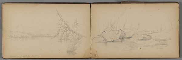 Editor: Here we have Sanford Robinson Gifford's "Landscape with Lake," a pencil drawing. It feels like a fleeting moment, almost like catching a dream. What stands out to you about the composition? Curator: The rapid, delicate lines immediately convey a sense of immediacy. Note how the artist contrasts the density of marks in the foliage with the sparser treatment of the water. Editor: The verso is intriguing as well. Curator: Indeed. The juxtaposition of the finished landscape with the fragmented studies on the verso invites us to consider the artist's process. The interplay of light and shadow, the balance of form and void – these are the fundamental elements that Gifford manipulates so skillfully. Editor: That's a perspective I hadn't fully considered. Thanks! Curator: My pleasure. It’s in these structural elements that the true meaning resides, don't you think?
