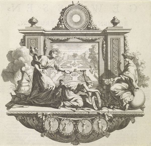 This engraving of Geneeskunde en Minerva was made by Pieter Tanjé in the Netherlands in the mid-18th century. It depicts the goddess Minerva, associated with wisdom and strategic warfare, in collaboration with Geneeskunde, representing the field of medicine. The image creates meaning through its use of classical allegory, a visual code common in the 18th century to ennoble the arts and sciences. Behind Geneeskunde, we see a shelf of jars, suggesting the importance of empirical observation in medical practice. Minerva extends her hand to Geneeskunde, symbolizing the integration of intellect and practical knowledge, and hovering putti carry a book with the symbol of Asclepius, the snake. This collaboration would improve the well being of the people. In a society still heavily reliant on patronage and learned societies, works like this promoted and legitimized medical knowledge. By using these classical references, it elevates medicine to the level of classical knowledge. Researching the patronage networks of Tanjé and the intellectual climate of the Dutch Enlightenment can deepen our understanding of this print's cultural significance.