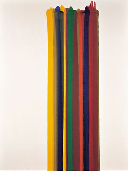 Paul Feeley's "Apyu" is a game of chromatic seesaw done with paint. Look at the red, so flat it practically vibrates! Two sinuous lines dance up the canvas, painted with a crispness that belies the human hand. The yellow and blue, side by side, have this fantastic push-pull effect, making you wonder if they're advancing or receding. The painting feels like a set of directions – to skip and hop. Each curve feels like a decision, not labored, but definite, and each color has its own weight. It’s got a similar feel to Ellsworth Kelly's pared-down shapes, but Feeley’s got this wiggle that keeps it from getting too serious. It knows life is a dance, and sometimes you just gotta let the paint lead the way.