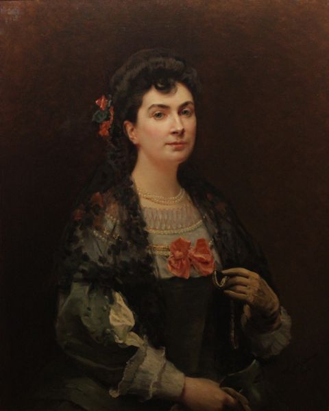 Léon Bonnat painted this oil on canvas portrait of Madame Dotézac in 1902. Immediately, the soft, diffused light and the sitter’s gentle smile create an inviting atmosphere. Bonnat's composition relies on a subtle interplay between the figure and the background. Notice how Bonnat uses color to structure our perception. The vibrant floral patterns in Madame Dotézac’s dress contrast with the muted greens and blues of the backdrop, drawing our eyes towards her. Yet, the brushstrokes are loose and gestural, merging figure and ground, creating a sense of unity across the pictorial field. This dissolution of clear boundaries can be seen as Bonnat’s engagement with the changing artistic currents of his time, where artists were questioning fixed perspectives and exploring new ways of representing reality. The portrait’s charm lies in its formal tension—between precision and fluidity, presence and ambiguity. As such, it becomes a fascinating visual study.