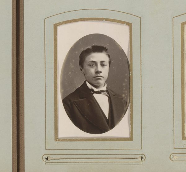 Editor: Here we have "Portret van een man met baard," or "Portrait of a Man with Beard," created sometime between 1870 and 1900. It's a gelatin-silver print photograph. Something about the man's reserved gaze and the oval framing makes it feel very… distant. What can you tell us about it? Curator: The distant gaze, as you put it, is very much a product of its time. This portrait is an artifact carrying complex cultural information. In this period, photography mimicked painting. The subject's averted eyes suggest contemplation. It almost recalls early Christian iconography of saints looking inward towards the divine. Do you see that connection? Editor: I do! The shape, too, feels familiar—almost like a religious icon. But instead of a saint, we have a man in a suit. It feels…secular. Curator: Exactly. The clothing symbolizes social standing. The beard suggests wisdom and maturity, culturally constructed concepts at the time. This photograph becomes a symbol of the era’s values and aspirations. We are invited to question, does the man embody the expected image? How do you interpret the blank background? Editor: Hmm, it could suggest isolation, or maybe universality? That this could be *any* man. Curator: Both are valid. It invites the viewer to project meaning onto him, and onto the era he represents. Photographs like these become incredibly potent historical symbols, open to ongoing interpretation. Editor: That’s fascinating. I never considered how much cultural baggage a simple portrait could carry. Thanks for enlightening me! Curator: My pleasure. These seemingly simple portraits can truly tell us so much about the past and ourselves.