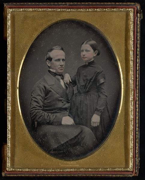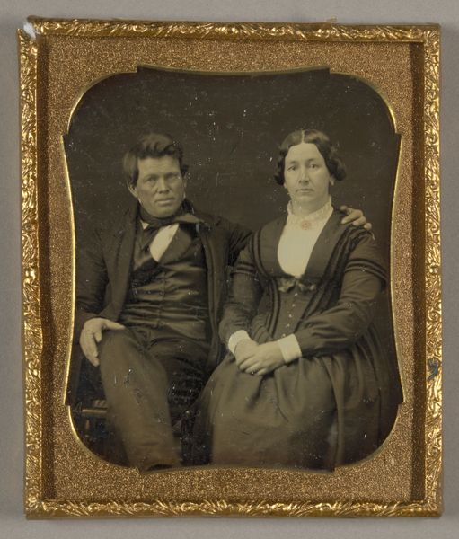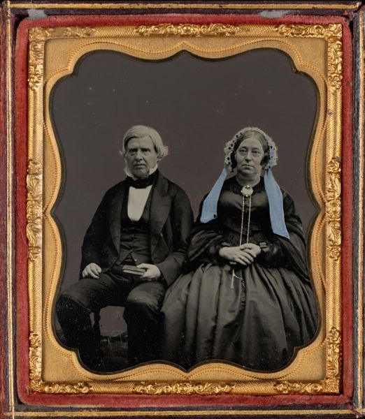 This is an early photograph of a formally dressed couple, made by Jeremiah Gurney in the United States, around the middle of the 19th century. The image speaks to the rise of photography as a powerful tool for social representation. Gurney was one of the leading photographers in New York, catering to a clientele eager to participate in this new form of portraiture. The daguerreotype process allowed for detailed, if somewhat stiff, likenesses, a departure from the painted portraits previously reserved for the wealthy. Notice the careful attention to clothing and pose, reflecting the aspirations and social standing of the sitters. The man's confident posture and the woman's demure gaze reinforce prevailing gender roles of the period. Understanding this image requires considering the social and economic context that enabled the growth of photography studios. Census records, business directories, and photographic journals can provide insight into the lives of both the photographers and their subjects. This portrait then becomes a window into the values and self-perceptions of a burgeoning middle class in the 19th century.
