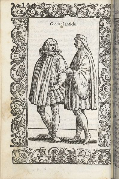 Editor: We're looking at "The Frivolous Youth," an engraving by Cornelis Anthonisz, dating from between 1542 and 1546. It's Northern Renaissance, right? The figures are fascinating—one with wings! It all feels allegorical… What’s your read on it? Curator: Allegorical indeed! For me, it's a visual poem about the perils of youth. See the winged figure? That's Youth, ready to take flight into fleeting pleasures, armor gleaming and sword at his side like every youthful fantasy, isn’t it? Editor: The other figure then, more mature… Experience? And is that a chest of coin at his feet? Curator: Exactly! That's worldly Wisdom, or perhaps even Greed depending on your outlook; but regardless a knowing character weighed down by worldly possessions and concerns. Is Youth even listening? Is his destiny to disregard and tumble right over the precipice of life's best and simplest choices? Editor: It makes you wonder, doesn't it? So, this print served as some kind of moral lesson? Did people actually heed that? Curator: Good question. Prints like this, readily reproduced and disseminated, were early forms of mass media, yes? They brought moralizing narratives into people’s homes – thought-provoking art and gentle cautionary nudges to think twice about what we place our hearts upon. Did everyone listen? Certainly not! But the message was out there... just like this dialogue will soon be, whispered into eager listening ears like yours! Editor: Well, that makes me see the print, not just as a quaint relic, but as a still-relevant piece about making good choices! Thanks! Curator: And thank you. Art’s all about seeing old stories in new lights, no?