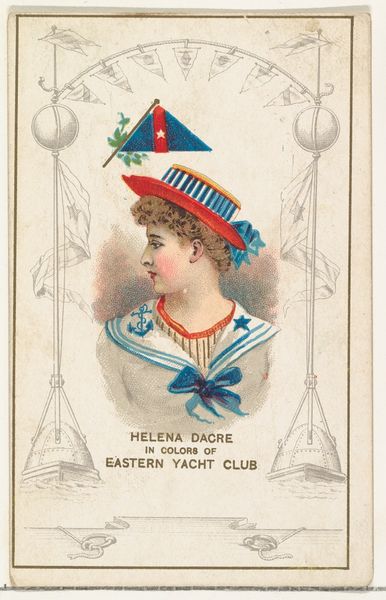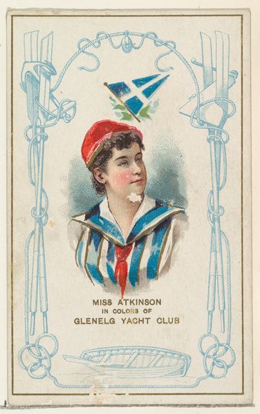 This promotional card for Honest Long Cut Tobacco, created by W. Duke, Sons & Co., presents "Miss Winner" in the colors of the Beverly Yacht Club. Dominating the composition is the yacht club pennant: a star within a blue triangle, evoking maritime pride and civic identity. Consider the star motif: throughout history, it has navigated humankind, representing destiny and divine guidance. From ancient Mesopotamian astral worship to its modern secular deployment, the star retains a sense of aspiration and excellence. In the Renaissance, we see Botticelli's Venus guided by a star, mirroring how 'Miss Winner', bathed in the glow of her emblem, channels similar aspirations. This card speaks to our collective yearning for recognition, subtly appealing to subconscious desires for success and belonging. The star, and the club's colors, represent a symbolic order, a beacon guiding us toward idealized versions of ourselves.