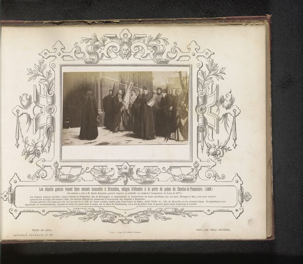 This is a reproduction of a photograph, "Botteresses Agaçant un Braconnier," created by an anonymous artist, and printed by Joseph Barthélémy Vieillevoye. The image depicts an encounter between women of the Botte region and a poacher, or "braconnier," highlighting social tensions and the policing of resources. In nineteenth-century Europe, the act of poaching wasn't just about illegal hunting; it spoke to deeper conflicts over land rights, class divisions, and access to food. The women here, likely representing local authority or community norms, confront a figure who challenges these structures by taking what is not legally his. This image offers insight into the social dynamics of rural communities and the enforcement of property laws. To understand it fully, one could research the history of poaching laws in Belgium, the social roles of women in that region, and the visual culture of representing such conflicts. Art like this serves as a historical document, reflecting contemporary attitudes toward law, class, and community.