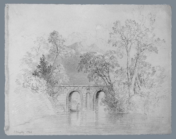 Editor: This is Antoine Jean Duclaux's "The Bridge over the Lez at Montpellier (under repair)." It's a pencil drawing, and it feels…melancholy? All those grey tones. What do you make of it? Curator: It whispers of resilience to me. See how Duclaux captures not just the broken bridge, but also the human activity surrounding it? There’s a story of rebuilding, of adapting to adversity. Makes you wonder what caused the damage, doesn’t it? Editor: Maybe a flood? I didn't even notice the people working on it until you mentioned it! Curator: Exactly! It’s easy to focus on the destruction, but Duclaux subtly shifts our gaze towards hope, towards the act of creation amidst ruin. Art often challenges us to find beauty where we least expect it, wouldn't you agree? Editor: I think I do. It’s less about the broken bridge and more about… what happens next. Thanks! Curator: A pleasure! It always tickles my fancy when the world is turned upside down.