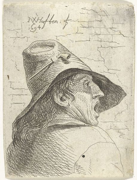 Stefano della Bella made this etching of an old soldier's head sometime before his death in 1664. An etching like this one begins with a metal plate, likely copper, coated in a waxy, acid-resistant ground. The artist then scratches an image into the ground, exposing the metal. When the plate is submerged in acid, the exposed lines are eaten away, creating grooves. Ink is then applied to the plate, filling these grooves, and the surface is wiped clean. Finally, paper is pressed against the plate, transferring the ink and creating the print. The material qualities of etching—the fineness of line, the subtle gradations of tone— lend themselves well to capturing the texture of the soldier's beard and the metallic sheen of his helmet. This highly skilled, labor-intensive printmaking process, while demanding, allowed for the relatively easy reproduction and dissemination of images, catering to a growing market for art and visual culture. The print also draws attention to the human cost of war, depicting its subject with dignity and pathos, blurring the boundaries between the graphic arts and social commentary.