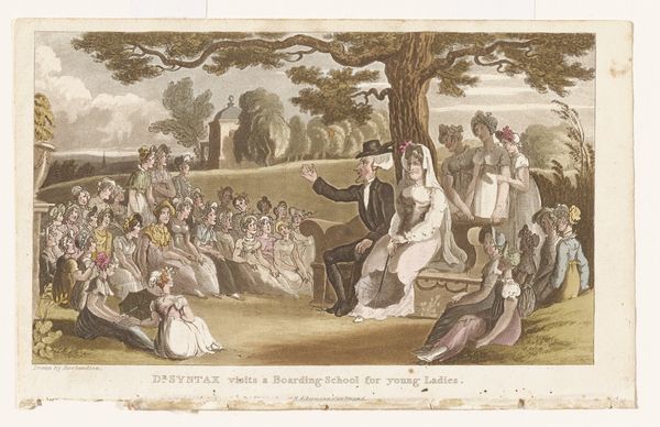 "Zonnewijzer van het Palais-Royal," or "Sundial of the Palais-Royal," was created by Adrien Victor Auger in the early 19th century as part of the series "Tableaux de Paris." It gives us a glimpse into Parisian society during the Restoration period. The print depicts a bustling scene in the gardens of the Palais-Royal, a place that was then a hub of social activity. Auger captures the complexities of class, gender, and identity of the time through the varied characters in the park. We see gentlemen in top hats, a fashionably dressed woman, and street urchins, each representing a different facet of Parisian life. The sundial itself, and the firing of the cannon, becomes a focal point around which these social interactions play out. Auger subtly critiques the social norms and hierarchies of his time. The emotional tenor of the scene is palpable, with the artist capturing the anxiety and excitement of a society in transition. The artist develops a narrative that invites us to reflect on the ever changing dynamics of social status.