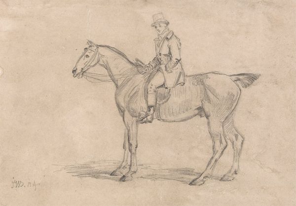 Editor: So, here we have "Man on Horseback, and Study of Horse’s Head" by Théodore Géricault, from around the 19th century. It's a pencil drawing, and to me, it feels almost like a ghostly sketch, something fleeting and ethereal. What do you see in this piece? Curator: Fleeting, yes! It whispers of a moment captured in the air. I love how Géricault uses the pencil – not to define, but to suggest. It's as though he's chasing the very idea of horse and rider, rather than meticulously recreating them. Notice the separate study of the horse's head. To me it hints at the artist's fascination with the animal's anatomy, its strength and its spirit. It’s Romanticism in a nutshell. Do you feel the movement in the piece? Editor: Absolutely, the horse feels ready to gallop right off the page! I didn't realize how much the unfinished quality contributes to that feeling. So, it's not a weakness, but rather the point? Curator: Precisely! It's the *suggestion* of movement, of power, that ignites our imaginations. The soft gradations create depth and volume, while the sparse lines keep the image open and alive. Think about the era: Romanticism embraced emotion and the power of nature, and Géricault is giving us that raw energy, unrestrained. It makes me think about capturing wild horses myself...not literally of course, but to somehow hold the intangible in my mind and heart! Editor: I can definitely see that now! I was so focused on what was there, I wasn’t paying attention to what wasn’t. Curator: Sometimes, Editor, what’s absent speaks the loudest. Remember to let your imagination fill in those gaps. I think, if I dare to dream a little more here, that it captures the essence, rather than just the appearance of a moment! Editor: I will! Thanks, I feel like I've truly learned how to see beyond the lines in this one.