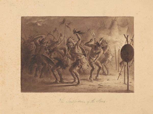 This photograph by Gustave Le Gray captures a scene of Bedouin people gathered around a bonfire. The fire, the heart of this image, is a symbol of warmth, community, and primal energy. Consider the ritualistic dance around the fire, a motif found across cultures from ancient fertility rites to contemporary celebrations. The figure with raised arms echoes the “Orans” pose, a gesture of prayer or supplication seen in early Christian art and reaching back to pre-Christian antiquity. It suggests a deep yearning, a connection to the divine or to ancestral spirits. The flickering light casts long shadows, creating an atmosphere of mystery and emotional intensity. The bonfire in Le Gray's photograph is not merely a source of heat and light but a focal point for collective memory and a powerful subconscious force, reflecting humanity's timeless need for connection and spiritual expression.