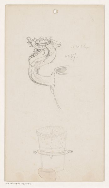 Curator: Let’s turn our attention to “Crock,” a piece Yolande Delasser created around 1937-1938. It employs a delicate blend of ink and watercolor, a fairly domestic subject that’s deceptively complex. What strikes you immediately? Editor: Well, there’s a haunting simplicity to it. It reminds me of something seen in a dream – like peering into a familiar yet unsettling space in the past. It seems suspended and strangely ethereal, especially the floating image below the object. Curator: Interesting you say “ethereal,” I read that shadow very differently. Consider how Delasser represents this common household object. Notice how she repeats a decorative, manufactured, floral image from the surface into a ghost or an imprint below. What work, and human labor, might we read here? Editor: Ah, yes, there's that element too - a hint of the manufacturing process of ceramics, almost mocking idealized ideas. And now, there's that stark white of the container, unadorned, while this kind of afterimage just below it looks handmade, and certainly more compelling to me than what the vessel seems meant for. I feel like that ghost reveals the potential locked inside something we usually overlook. Curator: Precisely! Think of the cottage industries producing these items. Her careful rendering challenges notions of 'high art' versus mere domestic production, pushing back on the hierarchies inherent in artistic spaces during this time. By isolating the Crock and its echo, the piece emphasizes the design's reproducibility and its cultural impact. Editor: It almost makes me think about time. Not just in terms of artistic recognition but, for the average person encountering these things, something about how what they possess becomes interwoven into their own existence and history. How labor and even love are put into these things--they become not just useful, but personal. Curator: And by presenting them here, she's acknowledging both the skill involved in production, and our connection to that labor. A complex dialogue between material production, art making and individual identity, if you will. Editor: Absolutely. Suddenly, what seemed a quaint still life becomes quite charged, really, full of little tremors that wake you up from simple acceptance. Curator: Indeed. Hopefully, the next visitor also feels that resonance when experiencing this object in real life, and contemplates where domestic lives and labour intersect.