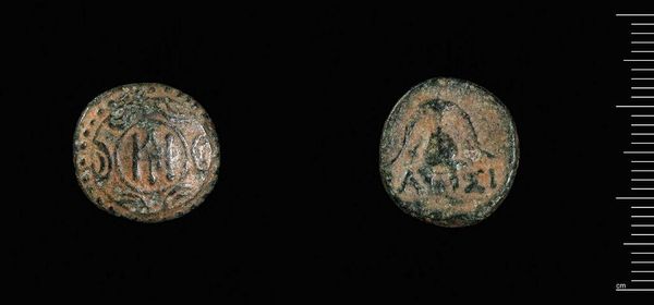 Curator: Here we have a coin of Philip II of Macedonia, residing at the Harvard Art Museums. Editor: It's quite weathered, almost illegible, yet undeniably weighty in its presence. The texture draws you in. Curator: Indeed. Coins like this were not just currency but also potent symbols of power. The imagery chosen conveyed messages about the ruler and the state. Editor: I see a figure, perhaps a head in profile? The composition is simple, almost stark, but that's likely due to the wear and tear of time. Curator: It likely presented the image of Philip II, linking the coin's value directly with his authority and presence. The other side seems to depict a horse, another symbol connected with leadership and military might. Editor: The green patina almost acts as a veil, obscuring the details while simultaneously adding to its historical aura. Curator: Think about how many hands it passed through, what transactions it facilitated. It carries a silent history. Editor: Despite its small scale, the coin demonstrates a mastery of form, and that weathering makes its statement somehow more compelling. Curator: It’s a tangible link to an era, and the ambitions of a king, even in this diminished state. Editor: A poignant reminder of the enduring power of even the smallest object.