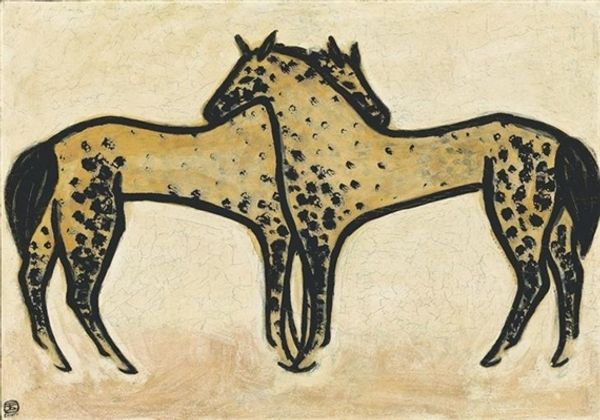 Editor: Here we have Niko Pirosmani’s "Giraffe," painted in 1905 using tempera. The almost monochromatic palette creates such a stark, melancholic mood. How do you interpret this work? Curator: For me, this giraffe speaks volumes about displacement and the outsider experience. Pirosmani was a self-taught artist, largely excluded from the mainstream art world of his time. Considering his background and Georgia's socio-political context in the early 20th century, the giraffe becomes a potent symbol. Editor: In what way? Curator: The giraffe is an exotic creature, out of place in the Georgian landscape. Doesn't this mirror Pirosmani’s own position as a marginalized artist, painting in a style that diverged sharply from academic norms? The animal's solitary stance emphasizes a sense of alienation, resonating with the artist's own feelings of otherness. The bare background suggests an emptiness, amplifying this isolation. Also consider the socio-economic undercurrent: animals as entertainment and status symbols for the wealthy, which plays into class divides. What’s your reading? Editor: That’s fascinating. I was focused on the simplicity, the almost childlike rendering, but your interpretation opens it up to a deeper commentary about social hierarchies. Curator: And his technique amplifies that reading: rejecting traditional artistic training can itself be read as an act of resistance against societal expectations. It’s all interwoven. Editor: This has totally shifted how I view the painting; I see the social critique now. Curator: Exactly, it's a powerful reminder that art can both reflect and critique societal norms.