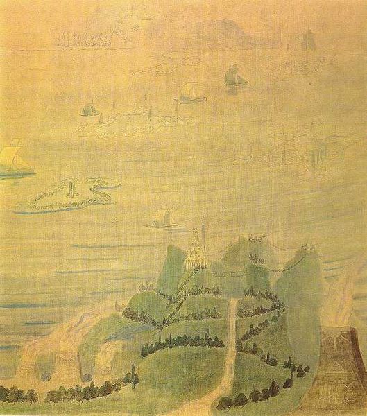 Mikalojus Konstantinas Ciurlionis made this painting, "Winter (II)," sometime before 1911, using a small format. Look at the almost skeletal trees, rendered in thick, chalky white. These shapes are so interesting, a build up of brushstrokes or maybe palette knife marks, that suggests a kind of sculptural process, the way the paint sits on the surface, creating texture. Then there are the fine lines trailing down, like melting snow or rain, a lighter touch against the heavy impasto of the trees. This contrast between delicate lines and dense forms creates a beautiful tension. It’s as if he's playing with different speeds and weights, giving a sense of movement and change. Ciurlionis’s landscapes often feel like dreamscapes, evoking a sense of mystery, not unlike some of the paintings of Odilon Redon. There’s this sense of music, or poetry, transformed into visual form.