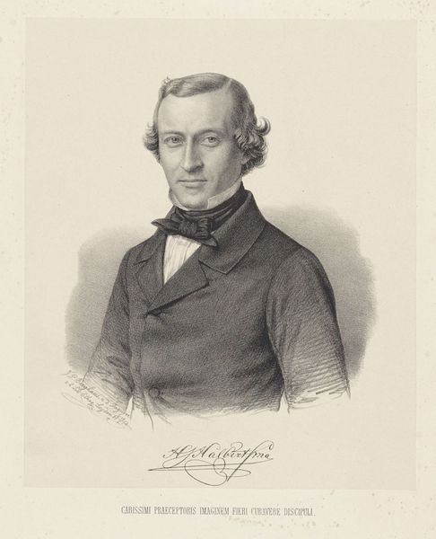 Editor: Here we have Adrianus Johannes Ehnle's "Portret van Bartholomeus Johannes van Hove," created sometime between 1842 and 1887. It looks like a pencil drawing. It’s incredibly detailed for what appears to be a sketch. What historical context do you see informing this work? Curator: Looking at this portrait, I immediately consider the social function of portraiture during the 19th century. It wasn’t just about capturing a likeness. It was often about projecting a specific identity, reinforcing social hierarchies, and conveying respectability. Van Hove, with his composed expression and formal attire, seems deliberately positioned within that framework. How might class and gender expectations have shaped his portrayal? Editor: That's a great point about social hierarchies! The detail in his clothing definitely speaks to a certain status. But were there also artistic or political elements in play, beyond just status? Curator: Absolutely. Think about the rise of nationalism in the 19th century. Portraiture often served to solidify national identities by celebrating prominent figures. Ehnle’s portrayal of van Hove may have subtly contributed to the construction of Dutch identity. The level of detail almost lends itself to the era’s rising sense of nationalism, doesn't it? Editor: I never considered that. It is interesting to view it through a nationalist lens. The drawing feels almost like an official record. Curator: Consider the materials. Graphite allows for precise detail. It evokes realism, objectivity—qualities prized during that era of scientific advancement and burgeoning photographic technology. What happens to our understanding of this image if we see it grappling with notions of objectivity during the dawn of photography? Editor: Viewing this portrait through different cultural and political lenses completely reshapes my perspective. Thank you! Curator: And thank you for raising new and insightful considerations for me! These discussions reinforce why interrogating the social and historical context of artworks remains vital.
