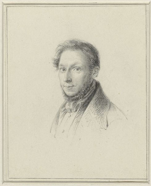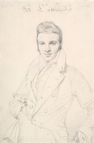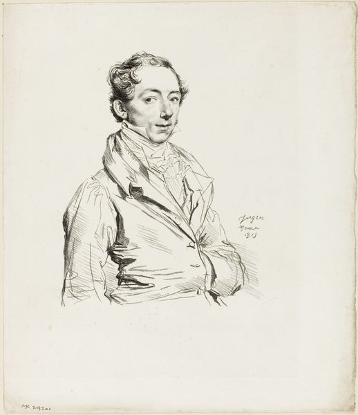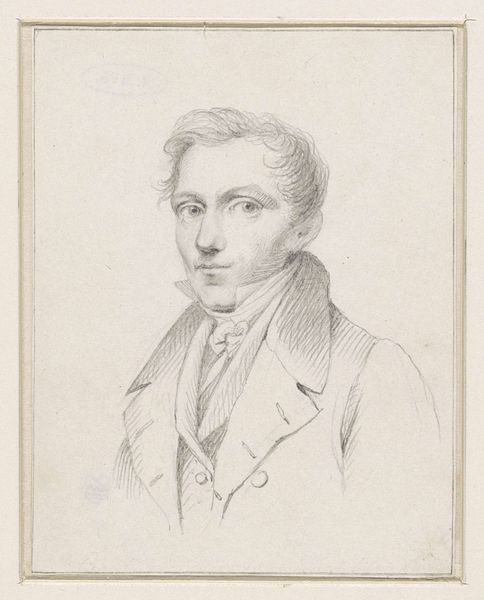 Editor: Here we have Théodore Chassériau’s "Portrait of an Unknown Man," a delicate pencil drawing. I'm struck by the detail in the man's clothing, especially his waistcoat. What can you tell us about how its materiality informs the piece? Curator: Notice the delicate hatching, carefully rendered to depict the texture of the paper itself, and the way the artist's hand mediates the luxury implied by the sitter's clothing. Consider how the availability and cost of materials impacted artistic production at that time. Editor: So, the drawing medium itself reveals something about the social context? Curator: Precisely. The labor involved, the availability of paper versus canvas, all shaped artistic choices and accessibility to different classes. The sitter's attire is carefully laid bare by the drawing, and the drawing itself underscores those economic realities. Editor: That's a fascinating perspective. I never considered the materiality of the drawing itself as a social commentary. Curator: Examining the means of production opens up new avenues for understanding the artwork's meaning and its place in a broader social fabric.