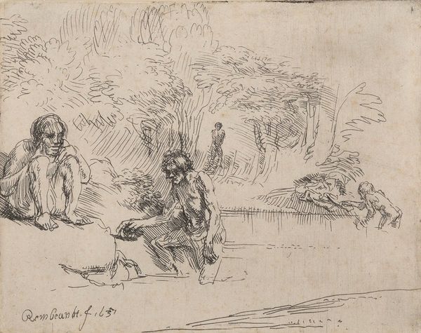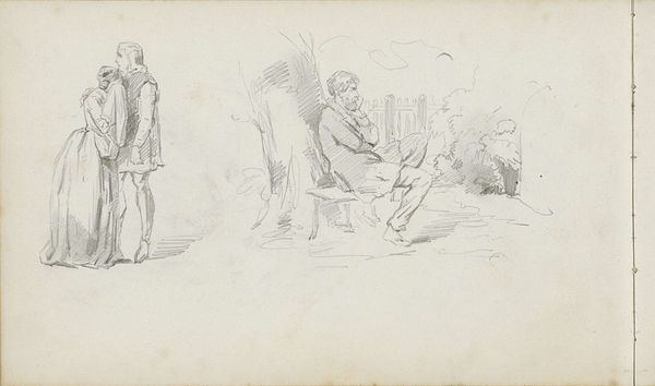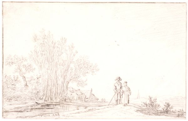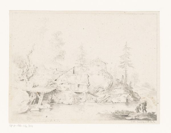 Simon Fokke's drawing, "Het weghalen van de fruitoogst," presents a scene rendered with delicate pencil lines, capturing a moment of harvesting. The composition, though seemingly simple, reveals a sophisticated understanding of space and form. Fokke’s lines delicately define the figures and landscape, creating a sense of depth and movement. Note how the artist uses the bare minimum of lines to suggest the weight of the figures and the texture of the surrounding foliage. The arrangement of the figures, the boat, and the distant structures establishes a visual rhythm, guiding our eyes across the scene. The figures are rendered with a certain economy, yet their gestures and postures convey a sense of purposeful activity. The composition draws upon classical landscape traditions, yet the sketch-like quality imparts a sense of immediacy and authenticity. The drawing’s openness invites us to consider the nature of representation itself. Does the drawing aim to be a faithful record, or does it offer something more? Consider the interplay between the precision of line and the open spaces of the paper, creating a balance between representation and abstraction.