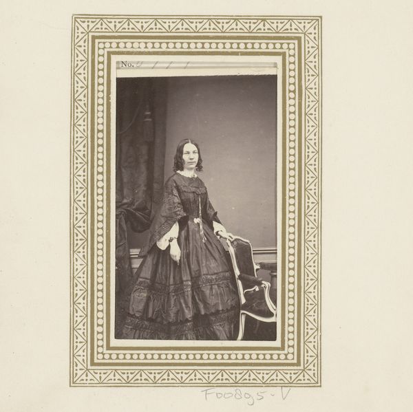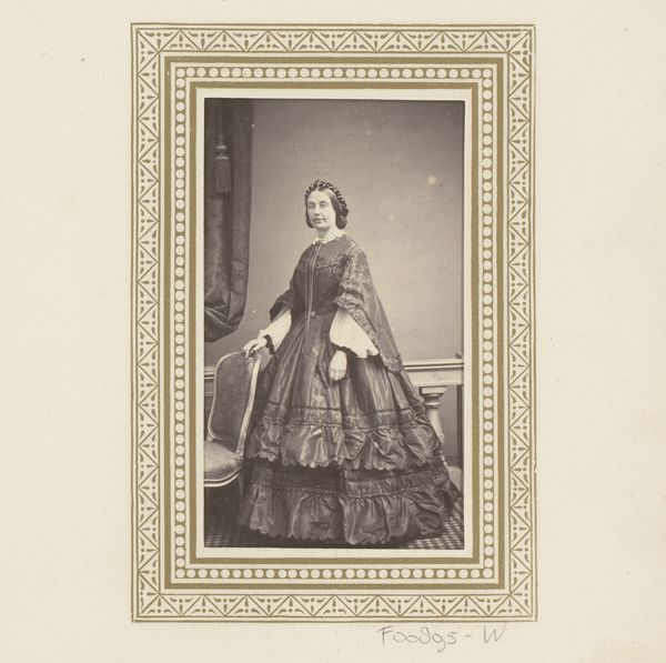 This is a photograph of a standing woman with a shawl, produced by Clarkington & Company. The carte-de-visite, a small photograph mounted on card stock, was a popular format in the mid-19th century. Looking at this image, we might consider how the rise of photography democratized portraiture. Before this, painted portraits were the domain of the wealthy, but now a middle-class sitter could commission an image of themselves. Yet, even in this new medium, social codes remained. The woman's pose is formal, her dress elegant, and her expression reserved. The painted backdrop suggests an idealized, almost aristocratic setting. Clarkington & Company, like many studios, was selling an aspirational image, reinforcing existing social hierarchies even as it expanded access to representation. To fully understand this photograph, we might research the studio's clientele and study etiquette manuals of the period. This helps to reveal the complex interplay of social mobility and cultural norms in the Victorian era.