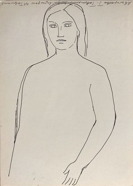 Editor: We’re looking at Gaston Lachaise’s drawing, “Head of a Woman,” housed here at the Harvard Art Museums. It's deceptively simple, with only a few lines creating the figure. What do you see in this piece, looking at its form? Curator: Notice how Lachaise uses line to create volume and suggest a monumental quality, despite the work's modest dimensions. The economy of line is striking. The form, while minimal, evokes a sense of classical sculpture. How does the curvature of the lines affect your perception? Editor: I see what you mean. The rounded lines create a softness, almost maternal, despite the stark simplicity. It’s quite powerful. I now better understand the impact of the line. Curator: Indeed. And it is in this interplay of simplicity and monumentality that Lachaise's genius resides. The drawing transcends its medium to become a study in pure form.