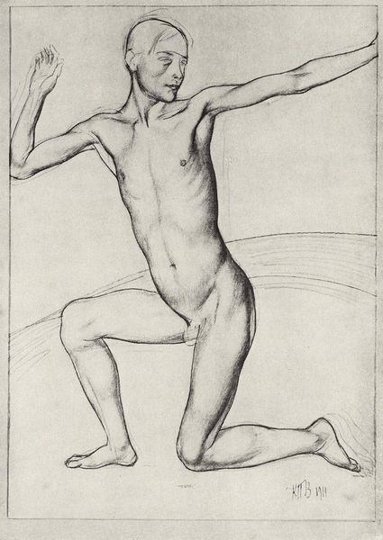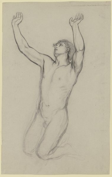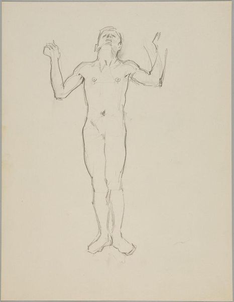 Curator: This is Denman Waldo Ross’s sketch, “Male Nude Hanging from a Strap and Separate Study of his Arm,” currently held at the Harvard Art Museums. It strikes me as a study in classical form. Editor: There’s an undeniable sense of precariousness here. The sketch, rendered in what seems to be graphite, feels raw and immediate, almost vulnerable. Curator: I think the pose, combined with the lack of contextual detail, encourages us to focus on the male form stripped of its conventional power dynamics. How does masculinity present itself when unsupported? Editor: Precisely. And the separate study of the arm, isolated, speaks volumes about the artist's examination of strength, labor, and the body as a site of production. I wonder about his choice of support. Curator: It's fascinating to consider how Ross positions this nude male figure not in a heroic stance, but one of suspension. The sketch challenges traditional notions of dominance within art historical contexts, doesn't it? Editor: It certainly leaves me pondering the implications of the materials used, the labor involved, and what constitutes classical ideals today.