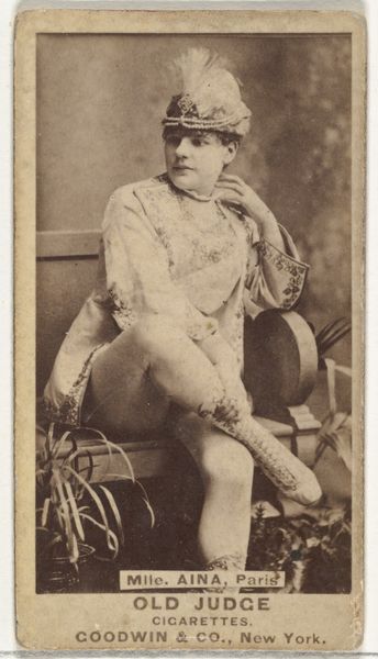 Editor: This is a fascinating piece from 1889 by Wm. S. Kimball & Co., a photograph titled "Miss Thorp, from the Actresses series." It seems to be a commercial print, likely part of a cigarette card set. What I find particularly striking is the overt display of female sexuality and its direct association with a product targeted at a predominantly male audience. What does it say about the way art was used at the time? Curator: It speaks volumes, doesn’t it? These "Actresses" series cards weren’t simply decorative; they actively participated in the evolving socio-economic landscape of the late 19th century. Think about it: mass-produced images distributed with cigarettes, exploiting the burgeoning star culture. They were cheap to make, easy to distribute, and extremely effective in boosting sales, weren't they? The very creation and circulation of these images tell a powerful story about how the image of women, and in this case a star image of a woman, was being commodified. Editor: So, the "erotic art" tag makes sense? It seems deliberately provocative, and intended as such. Curator: Absolutely. The hint of scandal would have been part of the allure, wouldn't it? It's about subtly pushing boundaries within acceptable commercial contexts, something still pervasive in the commercial consumption of imagery today. Consider the implications of Miss Thorp’s gaze: Is she complicit, challenging, or a victim of objectification? How is her sexuality portrayed and for whose consumption? Editor: That makes me think about the actresses themselves. Were they being properly compensated or were their images being used without permission? What control did they have over how they were presented? Curator: Those are crucial questions. Understanding the power dynamics inherent in image creation and distribution is fundamental. Exploring archives of theatrical history would allow us to know better. Now how does this relate to our culture of today? Editor: It's disturbing to realize these cards were an early form of targeted advertising that sexualized women to sell products. Understanding that history certainly makes you question contemporary uses of similar images today. I'll definitely be viewing advertisements critically from now on.