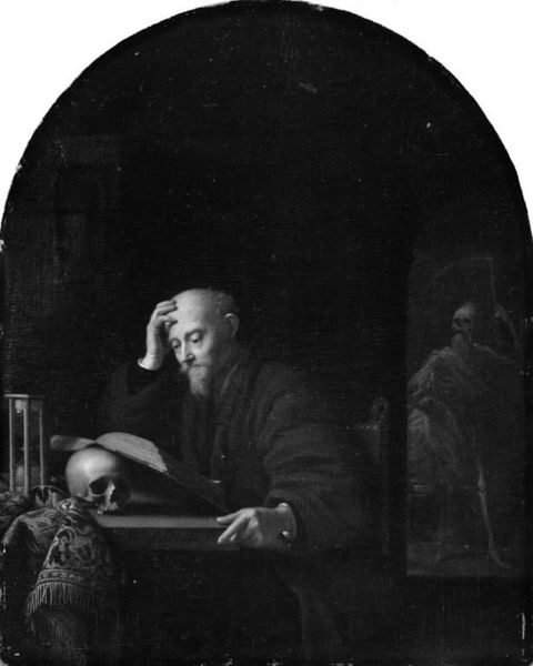 Domenicus van Tol’s painting, “The Astronomer,” uses oil paints to depict a scholar in his study, surrounded by the tools of his trade. Oil paint, valued for its smooth blending and rich colors, allows a lifelike representation of textures: the sheen of the globe, the soft folds of the astronomer’s cap, and the delicate feather in his hand. The way van Tol builds up the paint in layers, a technique known as glazing, brings depth to the composition. This technique, alongside the work’s themes, reflects a broader cultural interest in science and exploration during the Dutch Golden Age, a period marked by significant advancements in navigation and cartography. The painting is not just a portrait but a symbol of human intellect, rendered with care and craftsmanship. Considering the cultural and historical importance of this piece, we recognize the value of the painting not only as an aesthetic object but also as a document of intellectual and cultural history.