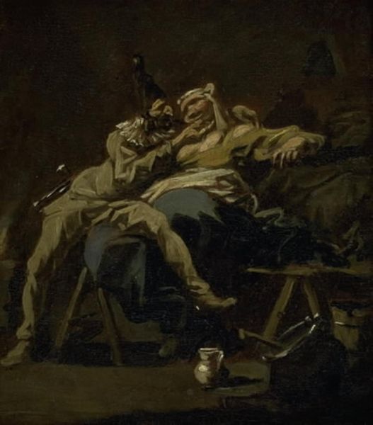 In Henry Fuseli's 1780 painting, "The Italian Count," we see a starkly lit scene dominated by contrasting forms. The rigid angles of the architecture confine the composition, emphasizing the Count's turbulent emotional state. Fuseli uses a dramatic tenebrism effect, casting deep shadows that heighten the psychological tension between the Count and the lifeless figure at his feet. The sword, leaning against the wall, is a harsh vertical line which punctuates the somber mood. The red of the Count's attire and the draped cloth draw the eye. This staging of the scene employs semiotic codes that invite us to interpret the dynamics of power, betrayal, and death. The Count's posture is a study in conflicted feelings, as his gesture of contemplation suggests remorse. Fuseli prompts viewers to explore the complexities of human emotions, acknowledging that art's purpose is to provoke thought and re-evaluation.
