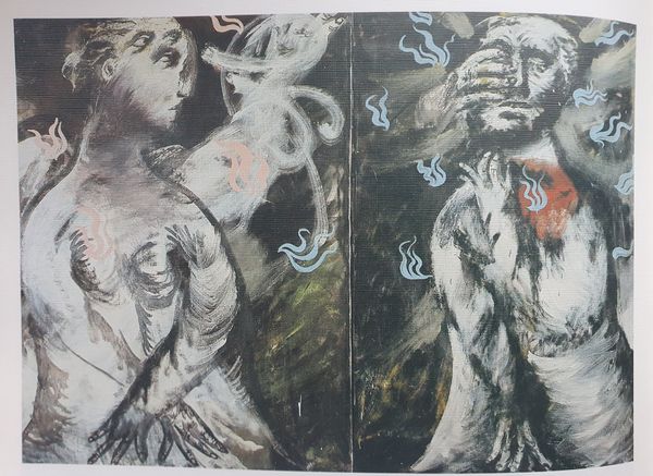 Editor: This is "The Dreams of Abyssinia," an oil painting by Oleg Holosiy, created in 1990. The figure seems to be caught in a moment of intense struggle, a raw and expressive depiction. What layers of meaning do you think are embedded in this work? Curator: Holosiy, emerging from the Soviet Ukrainian art scene, presents a potent figure that is simultaneously a representation of strength and vulnerability. Considering the historical context, 1990 was a period of immense upheaval and transition in Ukraine, wasn't it? How might that historical moment influenced the artist? Editor: The transition to independence certainly comes to mind. Maybe this internal struggle in the image represents the birth of a new nation or new societal challenges at play? Curator: Precisely. And the title evokes Abyssinia, ancient Ethiopia, with rich associations of its own as the only African country never colonized. Do you see any tension or even irony between the idealized body and a fraught sociopolitical context? Editor: It is a great contrast. The almost classical form of the figure clashes with the harsh brushstrokes and the ambiguity of its setting, making it relevant. I'm struck by the universality of human struggle reflected in both the subject and this crucial turning point for Ukraine. Curator: Exactly. Holosiy gives us an image of striving and resilience, reflective of both the individual and the collective. What have you learned, in particular? Editor: I appreciate how looking at art, particularly in times of conflict, brings the intersection of politics, identity, and representation of body front and center, making connections between past and present. Curator: Me too! It is the layers of identity, of a nation in this portrait, that truly endure in it.