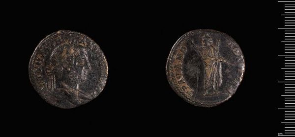 Curator: This is a Sestertius, bearing the likeness of Lucius Verus, part of the Harvard Art Museums collection. Its worn texture gives it a certain gravity. Editor: Indeed. The material condition speaks volumes. Think of the hands it passed through, the marketplaces it witnessed. What a history embedded in that copper alloy. Curator: And consider the semiotics! The profile, the imperial iconography... the coin itself functions as a signifier of power, of economic control. Editor: Precisely. Power, rendered tangible through labor. I’d like to know more about the conditions in which these were minted – the exploitation inherent in resource extraction. Curator: These coins were carefully considered designs, beyond just their material value and the labor to produce them. Editor: Agreed, both are important, and the synthesis brings fresh insights. Curator: A fascinating object to contemplate.
