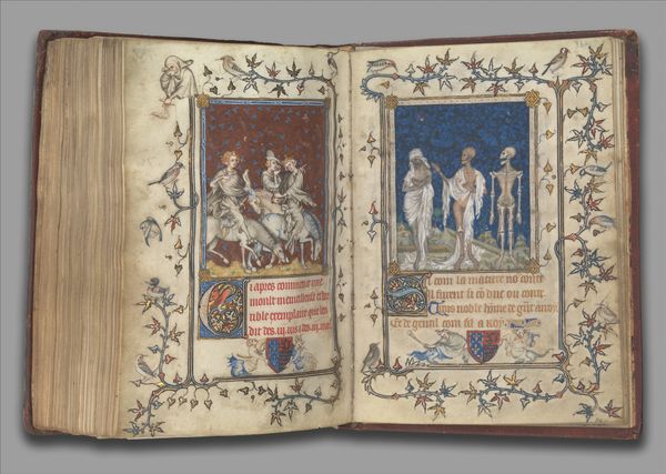This is a folio from The Hours of Jeanne d'Evreux, Queen of France, made around 1324-28 by Jean Pucelle. The book is made of vellum – calfskin prepared to receive ink – and the images are painted in tempera and ink, with touches of gold leaf. The method of making this book reveals a great deal. Vellum is a tough material, demanding great skill to prepare. The script and images would have been carefully planned and executed, and then painted in layers, building up the forms. Note the subtle gradations of tone, achieved by the artist's deft handling of the brush. Books like this were luxury goods, commissioned by wealthy patrons. The cost of the materials and the time required to produce them meant that they were out of reach for most people. The Hours of Jeanne d'Evreux is a reminder of the vast social and economic inequalities that existed in the Middle Ages, and the skilled labor required to create such an object. It's a testament to Pucelle's mastery of his materials.
