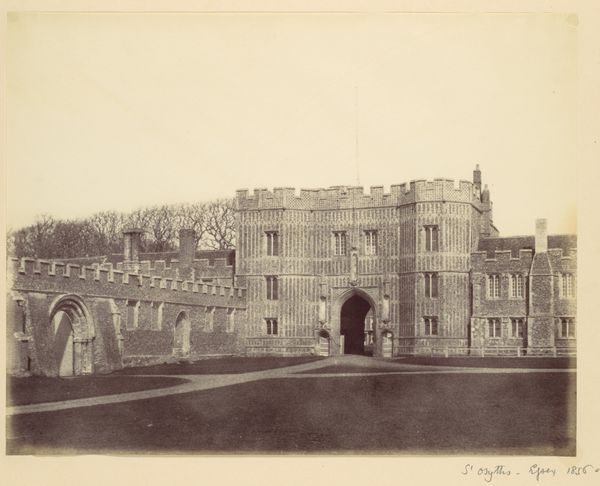 Alfred Capel Cure captured this melancholic image of ‘Thornton’ in 1860 using photography. The photograph features a grand, ruined gatehouse, its stone structure softened by the embrace of ivy. Ivy, here, is more than mere decoration; it’s a symbol. Throughout history, ivy has represented memory, attachment, and even decay. We see it clinging to structures in classical Roman frescoes, a sign of enduring life, and also in later Gothic art, where it speaks of time's relentless advance. Consider how ivy appears in funerary art, weaving through grave markers. It embodies a longing for what has passed, yet continues to exist in the present, if only as an echo. This resonates with our own psychological grappling with memory, where the past intertwines with our present consciousness, sometimes comforting, sometimes haunting. As you gaze upon this image, feel the weight of history, the passage of time, and the enduring connection between what was and what is. The ivy reminds us that nothing is ever truly lost.