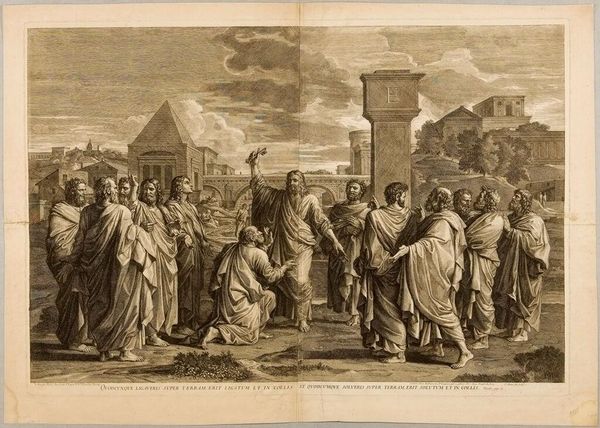 Editor: Here we have Paul Jacob Laminit's "Christ Preaching." Given it's a print, I'm curious about the labour involved in its production and how that might affect its reception. What do you make of it? Curator: Well, considering Laminit's era, this print signifies a shift in image dissemination. The act of replicating and distributing images democratized access, but what socio-economic structures enabled such production, and who truly benefitted from it? Editor: So, it’s less about the divine, and more about the means? Curator: Precisely! How does mass production alter our understanding of "originality," and who controlled the materials and the printing presses of the time? Food for thought, isn’t it? Editor: Definitely. Seeing it through this lens highlights the usually unseen hands behind the art.