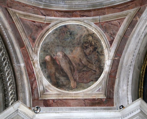 Stories of St. Jerome is a ceiling fresco by Alessandro Allori, located in Santa Maria Novella in Florence. Allori was working in the late Renaissance, during a time when artists were grappling with religious and social changes. Here, St. Jerome sits, half-naked, in a cave with a lion, the cross, and a skull, emblems of his penance. As one of the early Church Fathers, Jerome lived as a hermit in the Syrian desert where he translated the Bible into Latin. The image plays with this tension between intellect and the physical, as he gazes upwards, embodying spiritual enlightenment through corporeal suffering. Notably, the skull in this image, as in other depictions of Jerome, becomes more than a symbol of mortality. It's a prompt to consider what counts as a worthy life, what intellectual pursuits do we value? How do we balance inner reflection with the demands of the outside world? Allori's Jerome prompts us to look inward, to find our own path to understanding and acceptance, and perhaps, a bit of redemption.