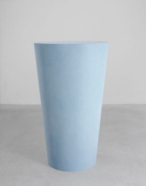 Editor: Here we have Shigeko Kubota's "Paper Cup," of indeterminate date. The cup's blue exterior is so smooth. What can you tell me about this piece? Curator: The interplay between the subtle blue and the pale tan creates a visually compelling object. The pure cylindrical form is deceivingly complex. How does the stark simplicity affect your perception? Editor: I think its simplicity almost elevates it. It makes you focus on the lines and form. Curator: Precisely. The lack of ornamentation forces us to consider the cup's pure geometry and the quality of its surface. It reduces art to its barest components. Editor: So, it's all about appreciating the essential qualities of the object? Curator: Indeed. The essence, the form, the materiality – these are the keys. Editor: I see. That really gives me a new appreciation for it.