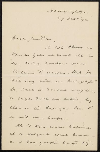 This is a letter to Philip Zilcken, written in French by Georges Eekhoud, dated October 12, 1899, from Brussels. Eekhoud, a Belgian novelist, was part of the late 19th-century literary scene that challenged bourgeois norms through its exploration of social issues and sexual identity. This letter provides a personal glimpse into Eekhoud's world, reflecting not only the literary exchanges of the era, but also the complex negotiations of identity. As a writer known for his progressive views and exploration of marginalized communities, Eekhoud often found himself at odds with the conservative societal standards of his time. Within the intimate act of letter-writing, Eekhoud likely expressed his innermost thoughts and desires. "I write to explore what it means to be human in all its messy, contradictory glory," Eekhoud once said, encapsulating his commitment to unearthing hidden truths. This letter is more than just a piece of correspondence; it's a tangible link to a writer who dared to challenge the status quo, inviting us to reflect on the emotional and intellectual life of a man navigating a world on the cusp of change.