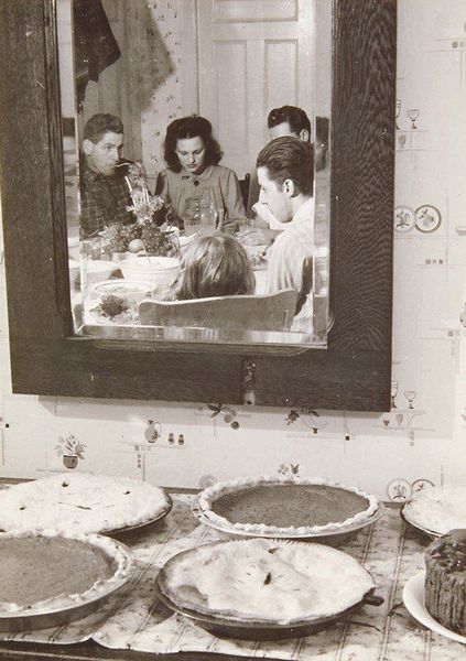 Curator: Standing before us is "Actors around table--Filming," a photograph taken by Robert Frank sometime between 1941 and 1942. It’s a fascinating snapshot of what seems to be a film set. Editor: My first impression is how unexpectedly domestic it feels. The floral wallpaper, the table set for tea, the rather formal attire... it's almost like a scene from a drawing-room drama, captured just before or after the "action" starts. But, of course, there is a giant film camera over to the right! Curator: Indeed! It's an interesting interplay. Frank was adept at capturing those liminal spaces between the staged and the real, the posed and the candid. What strikes me is how this image invites us to consider the behind-the-scenes labor involved in filmmaking, making that labor suddenly very visible. Editor: The framing definitely contributes. Notice how the composition emphasizes the room, crammed with its period-specific detail, even as the actors take center stage. What roles did they assume in the film, how was it staged, and for what kind of audiences? Curator: The "tableaux vivant" aspect cannot be ignored! But Frank's work often questions these very power dynamics between spectator and spectacle. This image can be interpreted as commentary on celebrity culture by bringing back the means through which media artifacts were fabricated, viewed, distributed, or discussed back then. Editor: Absolutely. By demystifying the artifice of the scene and emphasizing the collaborative process of filmmaking. I like this, particularly thinking about Frank's subsequent work that would have a profound influence in postwar and independent American cinema. Curator: Exactly! Ultimately, the image encourages us to acknowledge the many hands and hidden architectures that contribute to any mediated experience, that goes well beyond the art! Editor: Agreed. Looking at the film camera again, so present, it becomes its own character in the scene, which really highlights this interesting point you have just made.